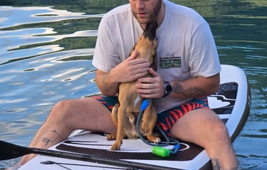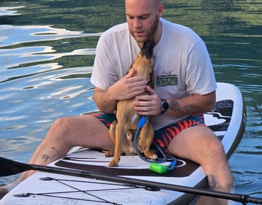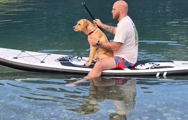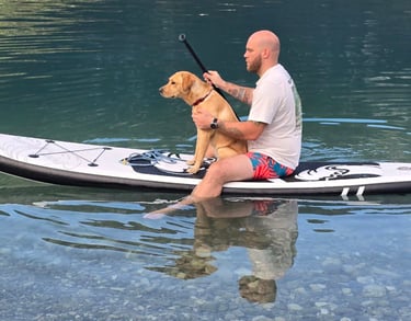 Una menzione speciale va ad Argo, il mio compagno a quattro zampe, che ancora una volta ha scelto di fidarsi di me ed è salito sul SUP per esplorare insieme, in mezzo al lago. Un momento di connessione pura. 🤍